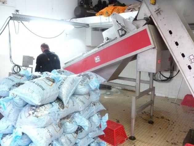 Permet de trier manuellement et en continu les coquillages non conformes. table d'emballage pour les huitres, rebords adaptés pour colis